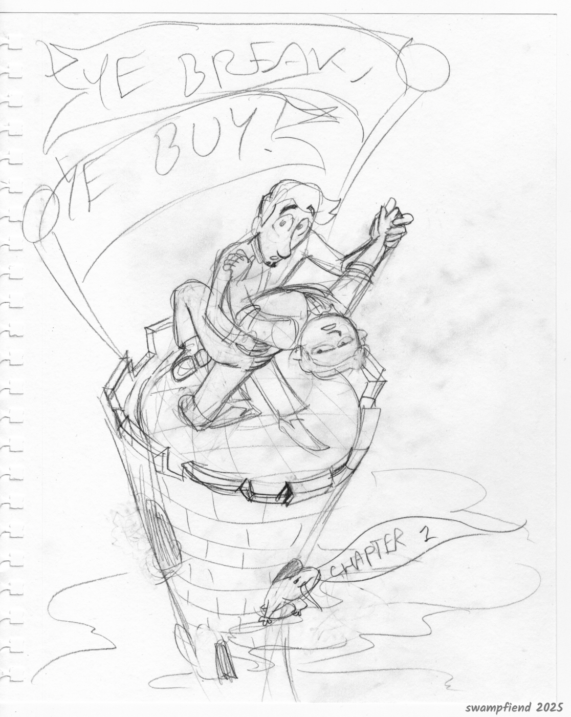 This is a collection of some choice thumbnail sketches and concept art for the first 31 pages of the webcomic Ye Break, Ye Buy. See how the sausage is made! Contains a zip file of 42 images.